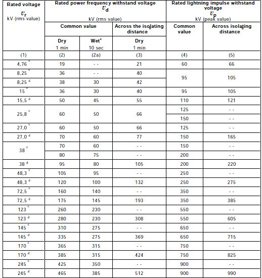 A dry, short-duration power-frequency with 50 or 60 Hz voltage test shall be applied.The test voltage shall be that specified in column 2 of the following tables , according to the relevant IEC standards.In these values, the altitude factor should be considered.